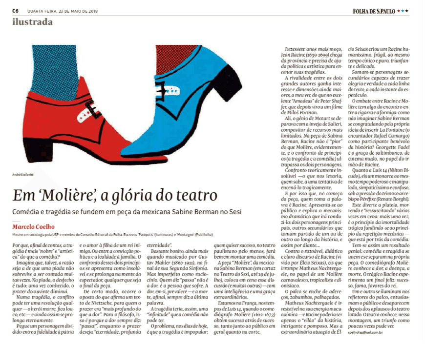 "Matheus Nachtergaele é irresistível na sua energia macunaímica. A extraordinária atuação de Élcio Seixas criou um Racine humaníssimo." - Folha de S.Paulo